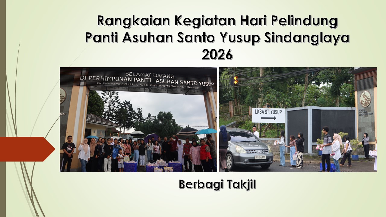 Setiap tanggal 19 Maret, Gereja Katolik sejagat merayakan Hari Raya St. Yusup suami St. Maria. Ketika berbicara tentang St. Yusup, tentu ada banyak nilai yang bisa digali darinya. Peran serta St. Yusup dalam sejarah keselamatan dan juga nilai-nilai penting hidupnya barangkali menginspirasi tokoh pendiri Panti Asuhan St. Yusup sehingga memilih St. Yusup sebagai nama panti. Maka, setiap tanggal 19 Maret, keluarga besar Panti Asuhan St. Yusup yang berlokasi di Sindanglaya-Cipanas merayakan pesta pelindung dengan mengucapkan syukur melalui Perayaan Ekaristi.